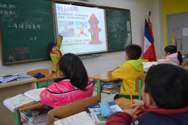 2015年1月9日下午第一节少先队活动课时间,成都蒙彼利埃小学一年级各班开展了“呵护生命——安全伴我行”主题班会活动。