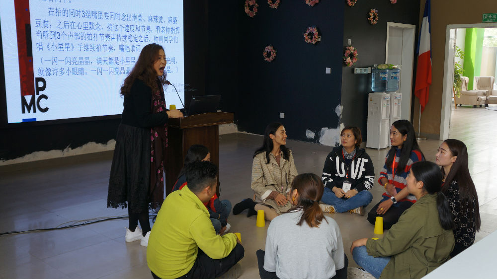 参与培训的有甘孜藏族自治州50位音乐教师以及成都蒙彼利埃的音乐教师。上午的接待首先由本校黄际老师带领50位客人参观学校,接着由本校文燕丽教师和李丽教师分别献课四川童谣《数星星》、《四川清音》以及讲解教学目标和设计本节课的思路并且与部分甘孜藏族自治州教师进行了交流。下午本校李丽教师对50位教师进行了主题为《地方素材进音乐课堂的实践探索》的讲座,内容生动活泼,各位年轻教师受益匪浅,最后甘孜藏族自治州的老师们以一曲欢快的民族歌曲圆满结束了本次活动。