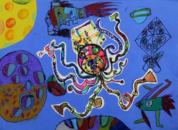 由成都市教育局、成都市科技局、成都市科学技术协会主办的“成都市青少年科技创新大赛”的科幻画比赛,是我校一年级萌娃第一次参加的绘画比赛,经过老师和孩子们的努力,牛刀初试喜迎佳绩。我校参加美术比赛的作品共计111张,获一等奖的占10%,二等奖20 %。科技画主要目的是提升孩子的发散性思维,自身的创造力,低段孩子没有受一些外部因素的干扰,所画的画稚嫩“无污染”,这也是我校在美术教育上一贯提倡的。为什么毕加索画的作品多数人认为跟小孩画的一样,这就是他在有意识的基础上,进行的无意识创作。那么孩子现阶段是无意识的,经过老师有意识的指导和指引变可以画出造型稚嫩手法稚拙的作品,希望萌娃们继续努力,再创佳绩。