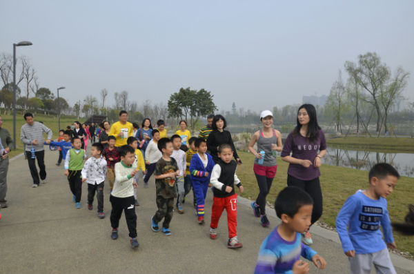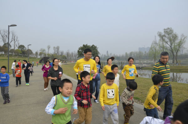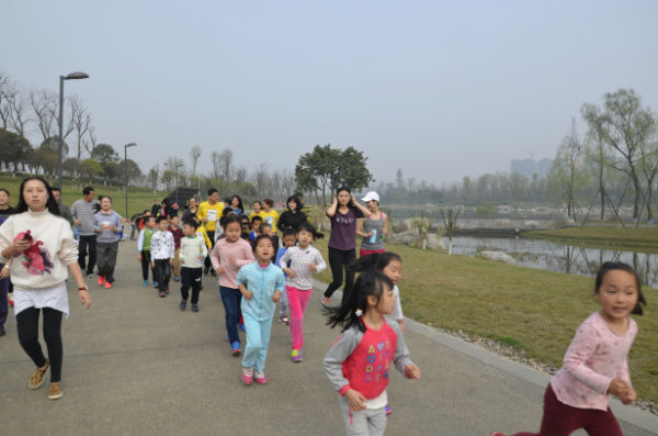 3月15日,在班妈妈王老师和各自爸爸妈妈的带领下,身着轻便运动服的32个蒙娃准时到达锦城湖4号湖区,简单的热身运动之后,10点,孩子们欢呼着迈出了“奔跑吧,三班”的第一步。