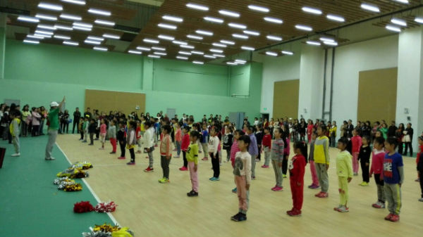 成都蒙彼利埃小学健美操队预备队于3月27日拉开了为期3个月的试训,试训结束后将进行淘汰选拔,择优录取前30(女生22名,男生8名)为健美操队正式队员。