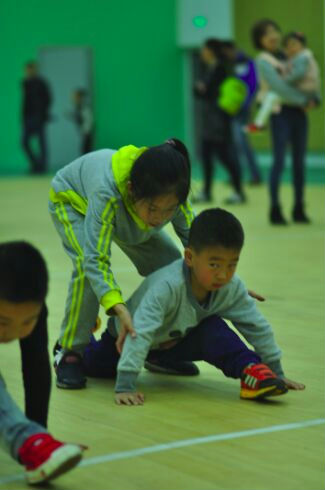 选拔开始之前,健美操队总教练小熊老师特邀成都市泡桐树小学(天府校区)健美操主力队员为参加选拔的小朋友们带来了精彩的表演和展示。而且在整个过程中都以小助教的身份带小朋友们参加选拔前的练习。