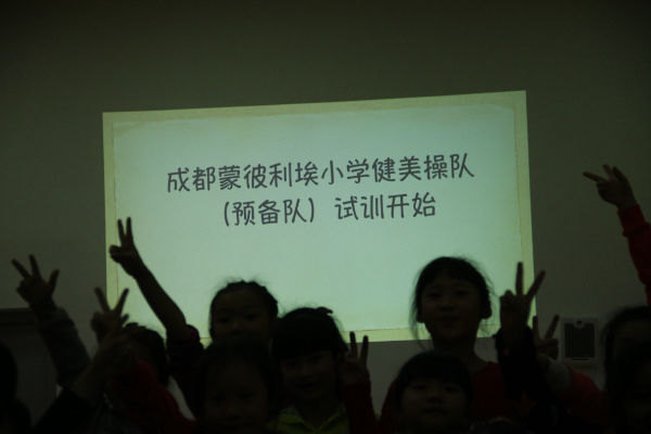 2015年3月22日,周日,本该宁静的成都蒙彼利埃小学却因为健美操队的选拔而变得更加“活泼”。在前期报名的116位小朋友之中,将通过选拔产生40位(女生30名、男生10名)为健美操队预备队员。