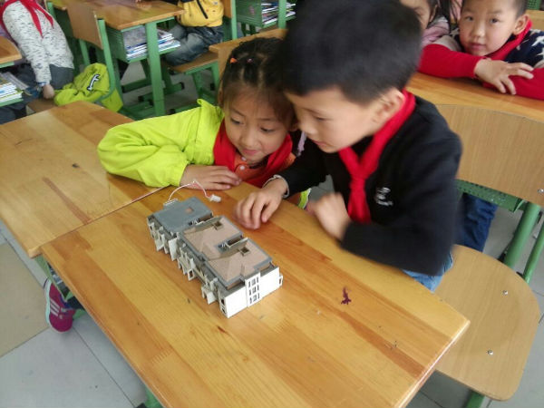 课堂上孩子们对建筑物的模型非常感兴趣,看着模型孩子们提了许多相关知识,比如大楼由多少块砖盖成的,盖一座大楼需要多长时间等等!