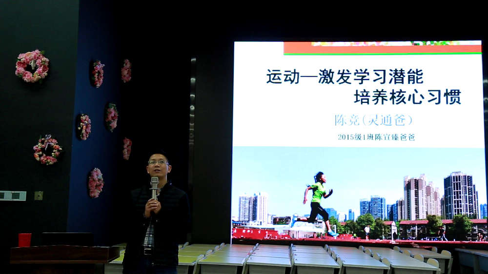 来自成都蒙彼利埃小学2015级1班的陈宣臻同学的父亲,陈竞先生给大家分享的题目是----《运动--激发学习潜能,培养核心习惯》。他站在一个父亲的角度、一个陪伴孩子成长的角度、还站在一个教育者的角度与大家共同分享。从运动出发,为现场的200余位家长和老师们全面认识我们面前的孩子的基础上,如何激发学习潜能、培养核心习惯构建理论框架。