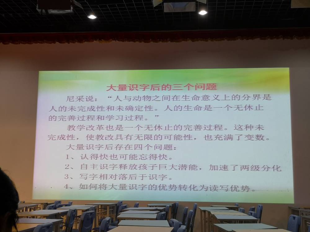课题总负责人李虎老师的报告让我们对这项课题实施的理论基础认识得更清楚,语文整体改革的推进有了明确的方向;指导专家陆恕校长的“自主识字后的变数与对策”提出的问题正是我们心中的担忧和疑惑,他针对这四大问题提出了有效的解决措施,一个个接地气的方法让我们心中窃喜,认认真真把每一个策略记录在笔记本上,等到中高段后一定运用在我们的教学中。