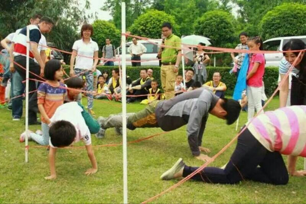 穿越封锁线,是孩子们的最爱。这横七竖八的细绳就是007的红外线报警系统,宇勇两队比赛谁最快穿越细绳,碰绳报警重来,又高又壮的爸爸难度特别大,小朋友显然比大朋友灵活,个个都像真正的007。 比赛还未结束,规则就被小朋友修改了,他们将比赛改为游戏,不停的再过一次又过一次红外封锁线,如果不是裁判强迫停止,他们就这样一直穿越着,没有胜负… …