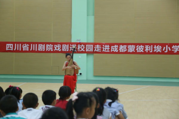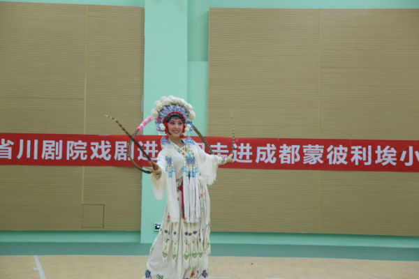 为弘扬优秀传统文化,提高青少年艺术修养,营造良好的校园文化氛围六一系列活动之川剧进校园于2015年5月11日中午在学校体育馆举行。戏剧进校园活动坚持育人为本,传承优秀传统文化,建设“向真、向善、向美、向上”的校园文化环境,引导少年儿童接受戏剧艺术的熏陶,树立文化自信心和健康向上的审美观念,促进学生艺术素质的提高。