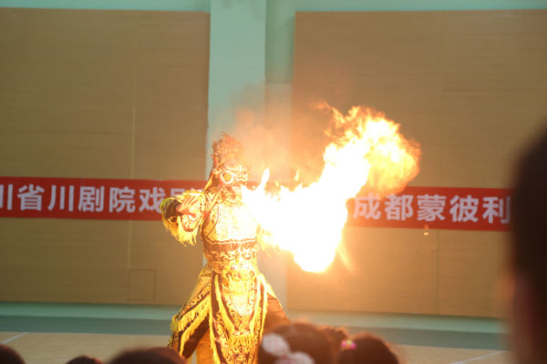 活动在孩子们的一片欢呼声和掌声中拉开帷幕,省川剧院的叔叔阿姨们为孩子们带来了“琵琶演奏”、“顶灯”、“变脸吐火”等具有代表性的川剧经典节目。每个节目都让学生陶醉和喜欢,整个活动过程中不断的传出孩子们阵阵的掌声和欢呼声,通过本次短暂的演出活动,相信孩子们对川剧有了一个初步的印象,对民族传统文化有了自己的认识。同时,川剧进校园活动也拉开了六一系列活动的序幕。