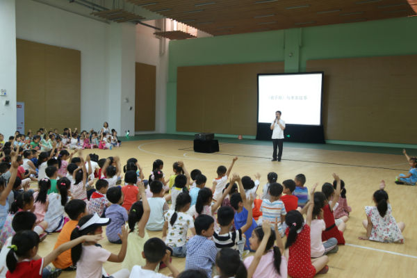 成都蒙彼利埃小学2015年六一儿童节系列活动已于本周来开帷幕,继四川省川剧院戏剧进校园之后,学校于5月15日邀请到了成都少儿频道注明节目主持人陈岳叔叔来校为小朋友们讲故事. 小朋友们在活动一开始就被陈岳叔叔所吸引住,整个过程都全神贯注的聆听着一个个小故事.接着,陈岳叔叔以弟子规为主,通过一首首好听的故事和历史典故让小朋友们再次重温和理解弟子规.
