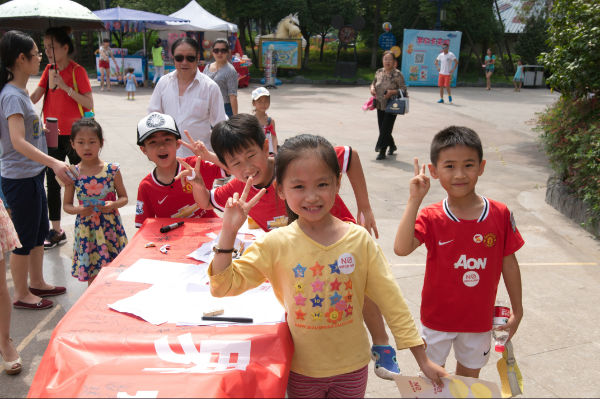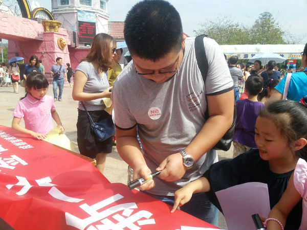 在活动最后时刻,作为本次活动的主要参加者,小朋友们和家长们也亲自在横幅上签下了他们的名字,活动也完美的结束了。