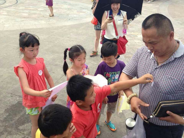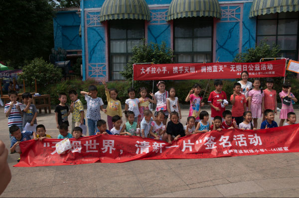 活动中,小朋友们一次次用手中的糖果和宣传资料,换取烟民手中点燃的一支支香烟。每当换下一支点燃的香烟,他们就笑得更加灿烂。尽管太阳越来越毒辣,但没有一个小朋友选择退缩,而是顶着烈日,继续耐心的给叔叔们讲解吸烟的危害。很多小朋友即使已经满头大汗,但送给人们的依旧是那甜甜的笑容······甚至有的小朋友还对认为可能吸烟的人们进行简单的无烟宣传。而有的则邀请路过的行人在横幅上签下自己的姓名,承诺今日绝不抽烟。