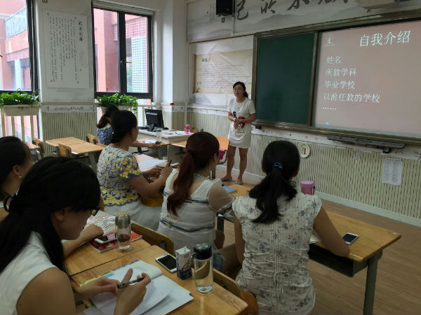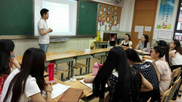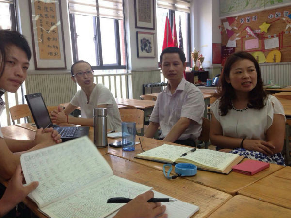 14日上午,三位指导老师和组员首先进行了自我介绍,加深对彼此的了解,为进一步交流做好准备。接着,组员们结合第一天的培训活动提出了自己的问题,包括常规课堂的实施模式、分享式教学的具体操作方式、新进教师的适应问题、新进教师的培养方案以及学校的常规注意事项等。组员们对以上问题进行了热烈的讨论,各抒己见。指导老师对相关问题均给予了细致的解答,并结合自身经历提出了一些有针对性的建议。