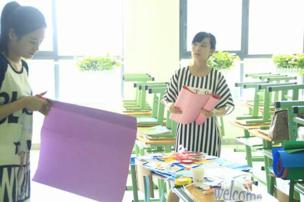 炎热的夏季还拖着长长的尾巴,蝉儿还在不知疲倦地鸣叫,然而这一切都比不上成都蒙彼利埃小学的老师们为了孩子们顺利开学准备工作的热情。鲜艳的彩色纸在老师们的手中变成教室里童趣的布置,小丝带变成了迎接孩子们的精美小饰品,一个个卡通娃娃似乎都挂着亲切的笑容等待迎接新的小朋友。保洁阿姨一遍一遍地清洁着每一个角落,滴滴汗水变成了窗明几净的校园,保安叔叔们在酷热中辛苦地操练,为了孩子们的安全他们已经忘却了身上的制服已经湿透……让我带着你轻轻走进这一群最可爱的人,看看每一个忙碌而温情的瞬间: