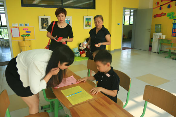 又是一个金秋送爽的时节,我们美丽的校园又迎来了一批活泼可爱的一年级小朋友。 8月30日早上8点多,在芶校的带领下一年级全体任课老师以及协助工作的老师们就已经在教学楼前方准备就绪。一排排美丽的彩旗,迎风飘荡,敞开怀抱迎接着新生的到来。新生陆续踏入校园,老师们分工明确,讲解、照相、分发拼图等工作紧张而有序地进行着。对于第一次迈进校园的孩子们,辅导员老师给予亲切的问候,耐心的讲解。本次开学采取扫二维码,使用APP新型方式查看分班情况,熟悉报到流程。通过拼图的游戏让小朋友们认识学校的校徽,报到形式特殊有趣,轻松快捷,受到一致好评。所有的新生家长顺利办理完入学手续。 相信一年级新生们能在老师的关怀和父母的期望下好好学习,茁壮成长,在“蒙小”这个温暖的大家庭中练硬翅膀,展翅高飞!