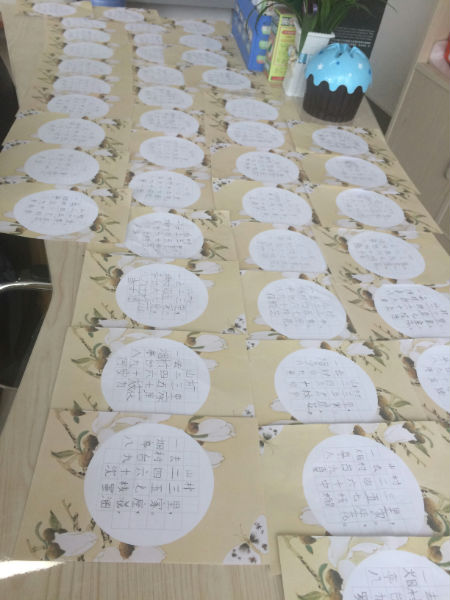 2015年10月9日,成都蒙彼利埃小学一年级的小朋友迎来了小学生涯的第一次书写比赛!赛前,学校积极宣传,家长紧密配合,孩子们努力练习,不出一周,孩子们已写得有模有样。中午一点,书写比赛正式开始。孩子们个个卯足了劲儿,一笔一画,认真书写山村一诗。不出半小时,小小书法家们便用小铅笔书写出了一篇篇工整、漂亮的硬笔作品。赛后,经过盲选,全年级共选出105幅优秀作品悬挂于校内供大家欣赏。