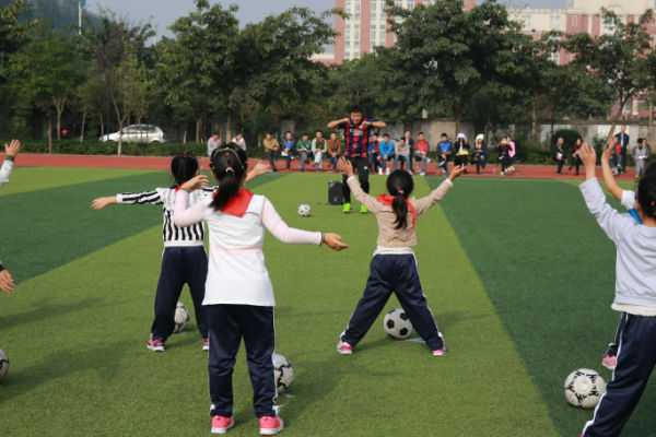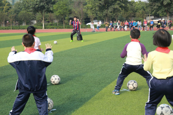 2015年10月28日(星期三),我校体育教师董崇龙老师应邀参加了,由成都市教育局主办,大邑县教育局协办,成都市教育科学研究院承办的成都市“名师好课”送教活动第十站“走进大邑安仁”送教活动,活动中我校体育教师董崇龙展示了一节生动有趣的足球课,得到当地观课教师的一致好评。课后教研活动中,四川师范大学体育学院教授,硕士生导师,四川省足球协会裁判委员会副主任,国家级裁判员,亚足联B级教练员,全国校园足球指导员讲师谭涌教授,对展示课进行了点评,提出了指导与建议。活动当天圆满结束。