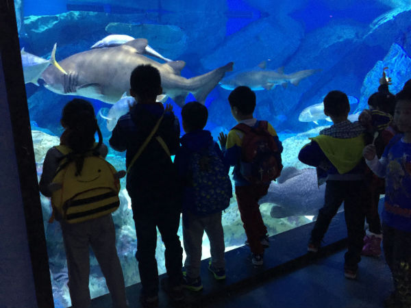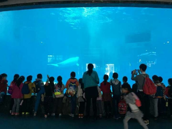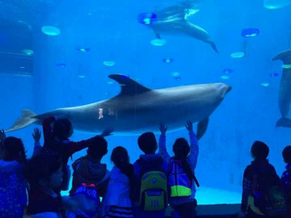 在海洋馆里,同学们认识并了解了海龟、企鹅、北极熊、海豹等海洋动物,还观看了海豚和白鲸的精彩表演;在工作人员的指导下,同学和老师还与这些海洋动物进行了亲密互动,同学们都兴奋不已,让孩子们更加牢固地树立起保护海洋动物的意识。