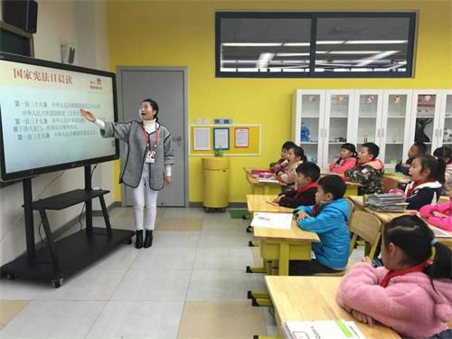 2015年12月4日是第二个国家宪法日,为弘扬宪法精神,增强全校师生的法治意识,让同学们作一名执法懂法守法的合格小公民,成都蒙彼利埃小学紧紧围绕“弘扬宪法精神,推动创新、协调、绿色、开放、共享发展”的活动主题,开展了以宪法晨读、宪法进课堂、宪法宣誓等多种形式的主题教育活动,增强了师生对宪法的认知,营造了良好的校园法治文化氛围。