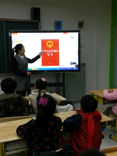“什么是国家宪法日?”“宪法长什么样子?”“宪法在法这个大家族中的地位最高”“同学们的受教育权受法律保护”……宪法课正式开始,老师从国家宪法日的由来和重要意义引入,采用图片展示、问答互动等形式,从宪法的体例编排、法律地位、主要内容等方面深入浅出地为同学们讲解宪法的基本常识,最后,结合案例,为同学们重点解读了宪法第二章“公民的基本权利与义务”中的受教育权和人身权利以及第四章“我国的国旗、国徽、国歌、首都”。