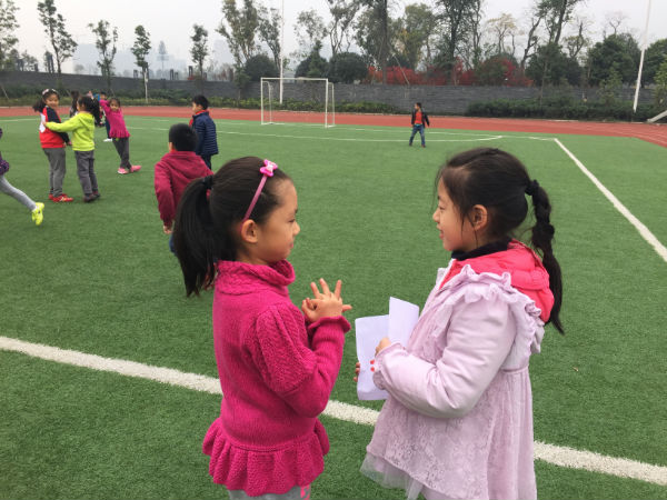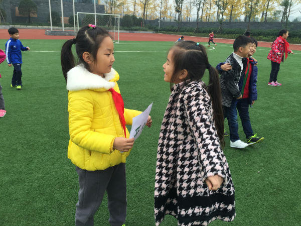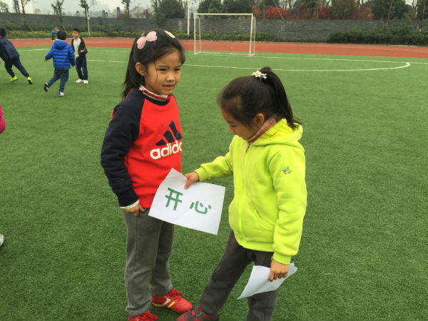 2015年12月10日中午,二年级五班的孩子欢聚操场,和牟妈妈上了一节心理活动课——《释放自己的情绪》。