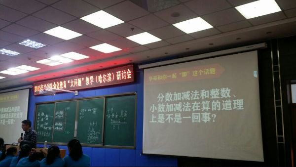 下午的两场观摩课的老师均来自生命化教育“大问题”教学课题实验区哈尔滨市香坊区,其中《临死前的严监生》为我们展示了“大问题”教学在语文学科中的运用。课后,香坊区教师进修学校校长李军分享了香坊区全学段、全学科推进“大问题”教学研究的经验,拓宽了我们的认识,“大问题”教学作为对小学数学教学的重构性探索,在李军校长看来,不仅是适用于全学科的一种“课堂教学的策略、理念,更是课堂教学的哲学思考”。来自广西的特级教师陈燕虹作了题为《“大问题”课堂学生学习能力培养》的讲座,分享了桂林市秀峰区推行“大问题”教学的实践经验和相关教学成果,让我们感受到陈燕虹老师作为“大问题”教学的积极践行者不仅乐在其中,而且乐有所成!
