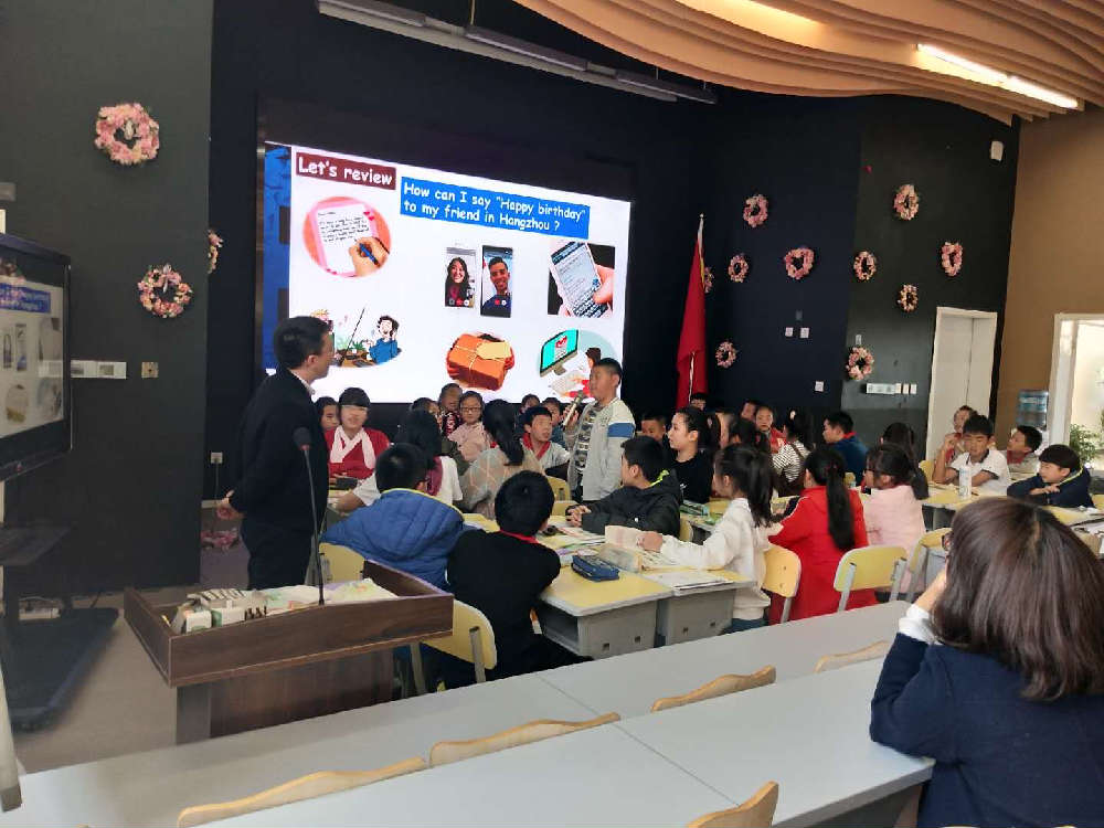 黄老师是以图片的形式来询问学生们,引导他们进行思考和讨论,从而引出今天的课题。他的课上每个环节紧紧相扣,层层递进,最重要的是这次课堂上活动环节很多,学生的参与度很高,而且他还及时给孩子评价,并且以孩子们最感兴趣的话题引出该单元的功能句型,让学生们很快就理解了。这场精彩的展示课赢得了大家的一致好评。