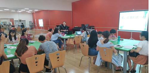 上午的培训,是两位老师给大家分享班级管理方面的内容。一位是性格爽朗,亲切可爱的罗萍老师分享的《爱,让我们在一起》。她提出作为老师,最重要的一条就是要爱孩子。当罗老师回忆起自己曾经带过的孩子时,脸上写满了幸福和欣慰。随后罗老师从班级制度、激发学生和家长的集体荣誉感、班级小干部管理等等几个方面作了介绍,而贯穿这些工作始终的便是不遗余力地坚持正面教育,无条件地爱学生。这一场爱的传递,爱的盛宴让老师们非常的感动,也更明确了未来在与学生相处的过程中要始终坚持的黄金原则——爱学生。