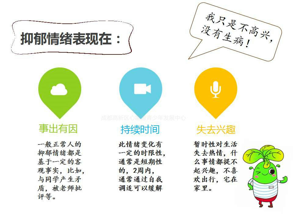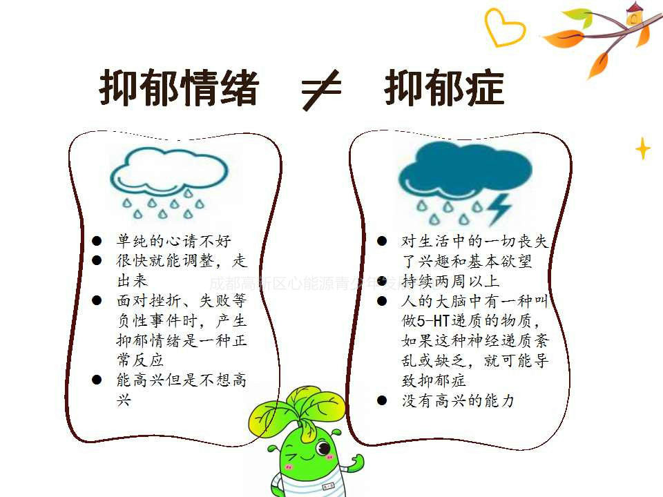 当前社会竞争日益激烈,几乎每个人都在超负荷运转,很容易产生不同程度的抑郁。对于孩子也不例外。当孩子遇到一些学习压力、生活挫折或者不好的人际关系等情况时,产生抑郁情绪。首先明智的爸妈们需要区分抑郁情绪和抑郁症: