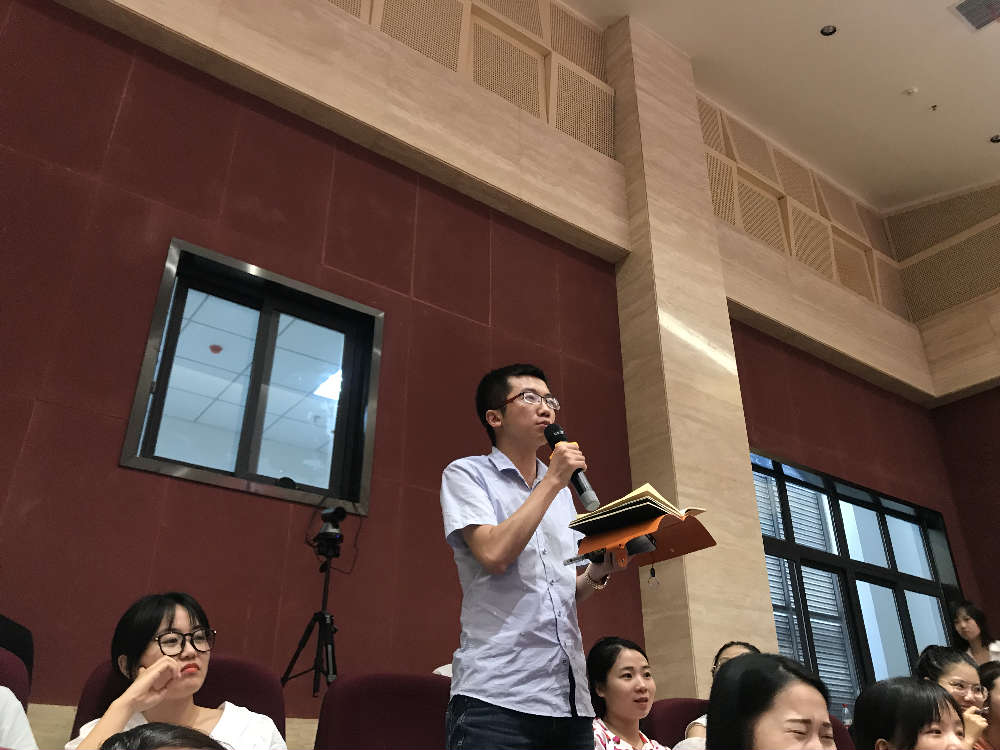 徐老师就专业认知下的法律底线、师德红线、思想航线三方面展开,分别讨论了教师在进行教育工作时何事可为,何事不可为。徐老师通过多个案例的分析指出,当下是社会主要矛盾发生深刻改变的时代,学校承载各种社会矛盾的时代,教育从未受到如此“关注”的时代,教师“形象崩塌”与“人设崩塌”并存的时代,需要教师认识自己、认识行业,认识社会的时代。徐老师发言结束之后,各区参培老师纷纷提出自己的困惑,使得会场讨论氛围十分热烈。我校数学组黄威老师的提问更是引来全场喝彩。