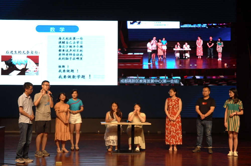 下午三点,三区四会场六主题的团队分享活动相映成趣。全区各组老师分别选用诗朗诵、情景剧、讲故事的形式向大家分享对《教师生命的意义》、《教师成长的法则》、《理想的师生关系》、《我眼中的学生》以及《我何以为师》五大主题的理解。我校参与的情景剧《我何以为师》的表演中,中法两语的开场尽显我校的教育背景与特色,获得台下同僚一致好评。同时,语文、数学、英语、音乐及体育等学科老师的精彩表现,也彰显了学校老师的专业素养和蒙小风采。