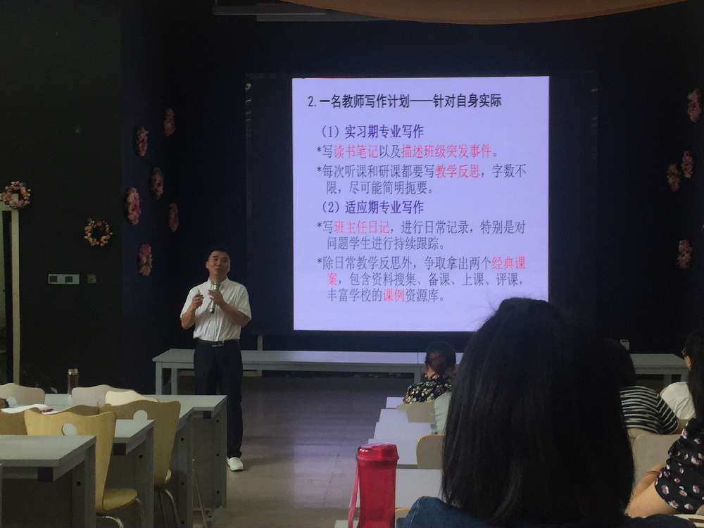 接下来,《四川教育》首席记者余小刚以“一个教师写作的时代必将来临”为切入点,结合案例和理论和老师们畅聊了“写作的重要性”、“ 怎样写作”两个话题。他用扎实的理论为全体教师提供了写作的方法。