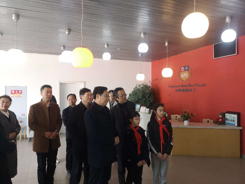 12月27日下午,西安市委常委马希良同志、西安市教育局党委书记、局长姜建春等一行12人在成都市教育局副局长万斌同志、高新区社区发展治理和社会事业局彭涌局长的陪同下参访成都蒙彼利埃小学。