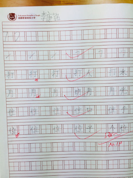 这些书写认真,卷面整洁,笔画正确的作品被一张张贴在教室的展示墙上,下课后总是有学生凑到前面“欣赏”,有一学生学见到同学的字,自言自语:“真得写得好好哦,我要加油练习超过他们!”就这样,他回家后每天坚持练字,到目前为止没有间断,他笔端下的字也一天天工整起来……榜样的力量就是这样神奇!